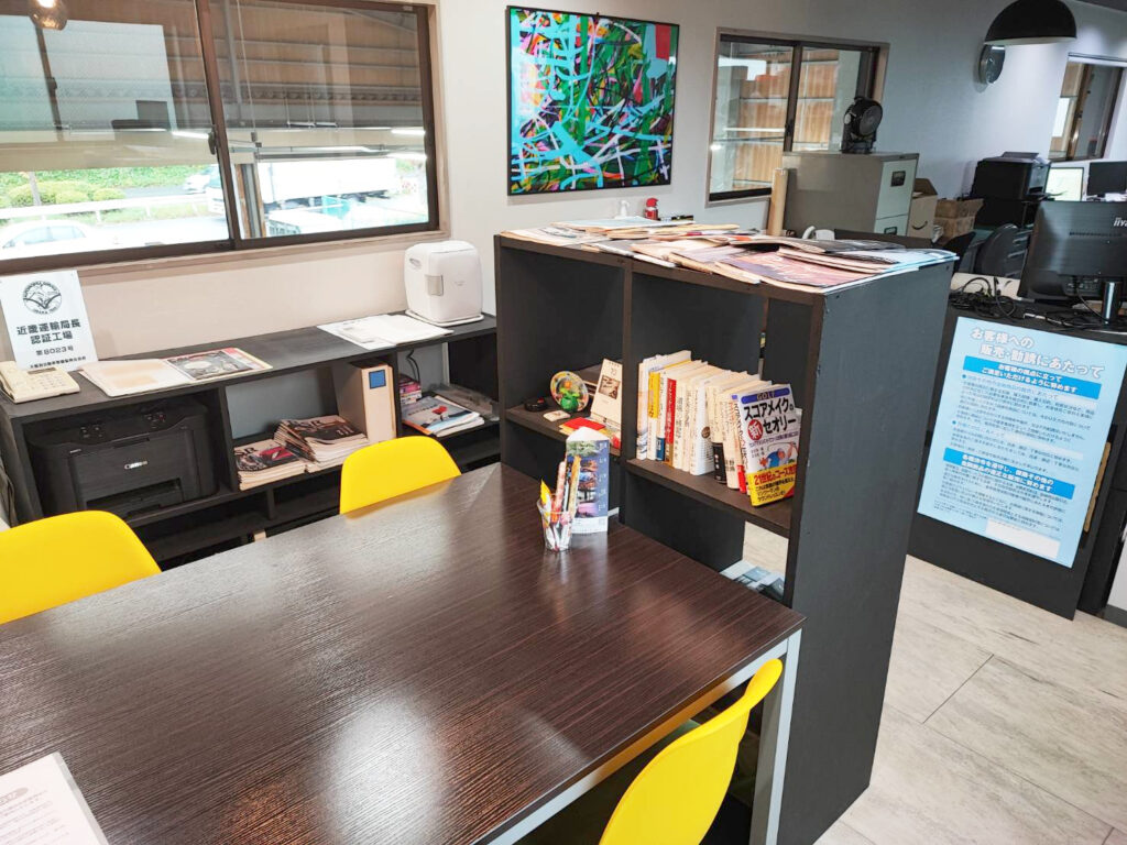 お客様のお車を整備・点検している間、こちらの待合室をご利用ください。