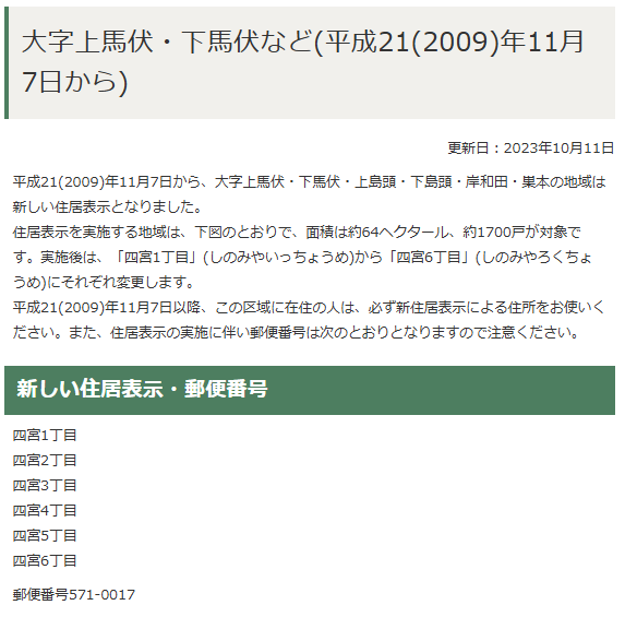 当サイトでは、四宮1丁目3の住所でマッピングしています。これは、門真市により新しい住居表示になった為です。(詳細は以下の通りです)