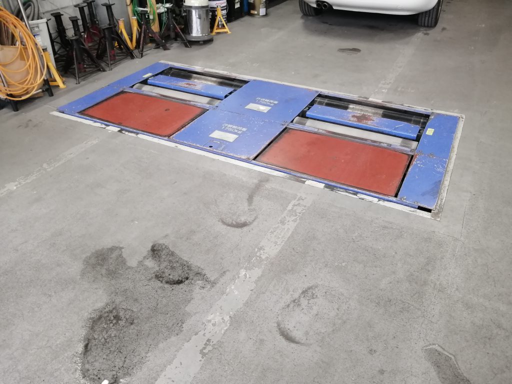 車体の下に入って作業するため、車を持ち上げる装置です。