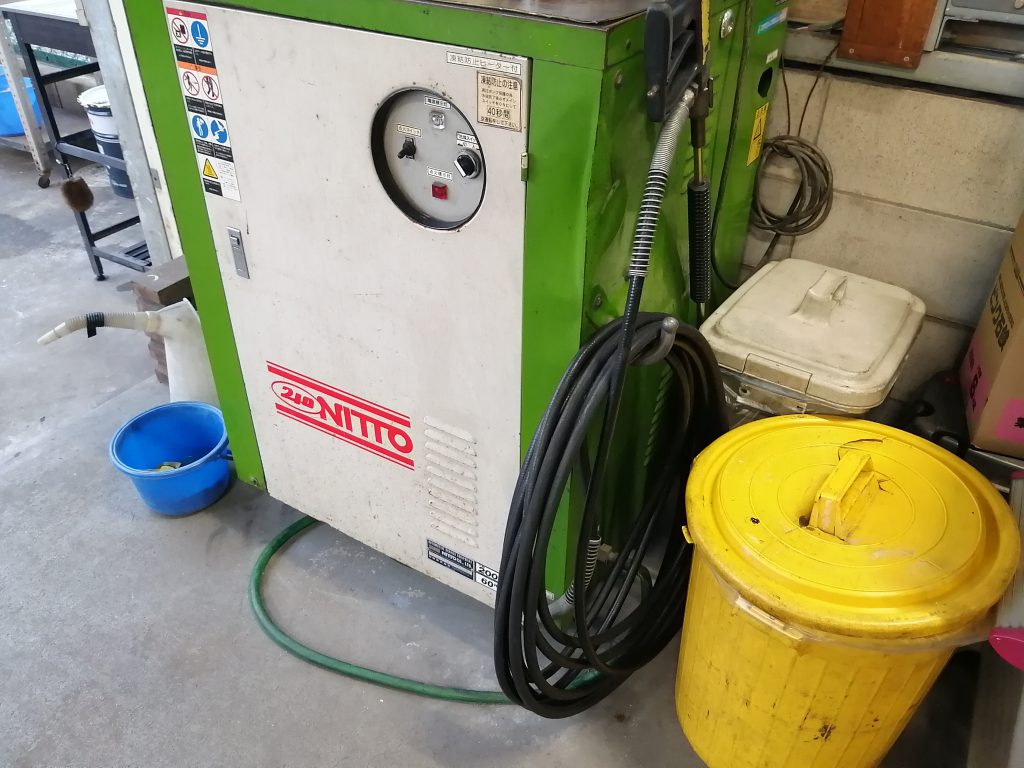 点検や整備の前に、自動車の底・懸架装置・足回り・原動機の周辺の汚れなどを高圧の温水で洗い流す機械(通称スチーム)です。