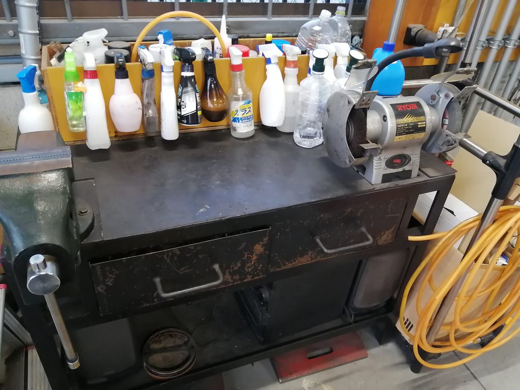 作業台の上で、万力で固定した部品をドリルで加工したり、ハンマーで叩いて修正したり、切る・穴あけ・削る・磨く・曲げる・溶接・乖離するなどといったさまざまな加工を施します。